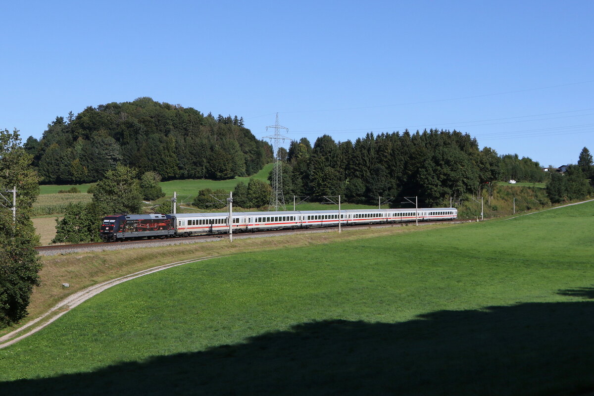 101 081-8 mit dem "IC Königssee" am 21. Juni 2015 bei Übersee.