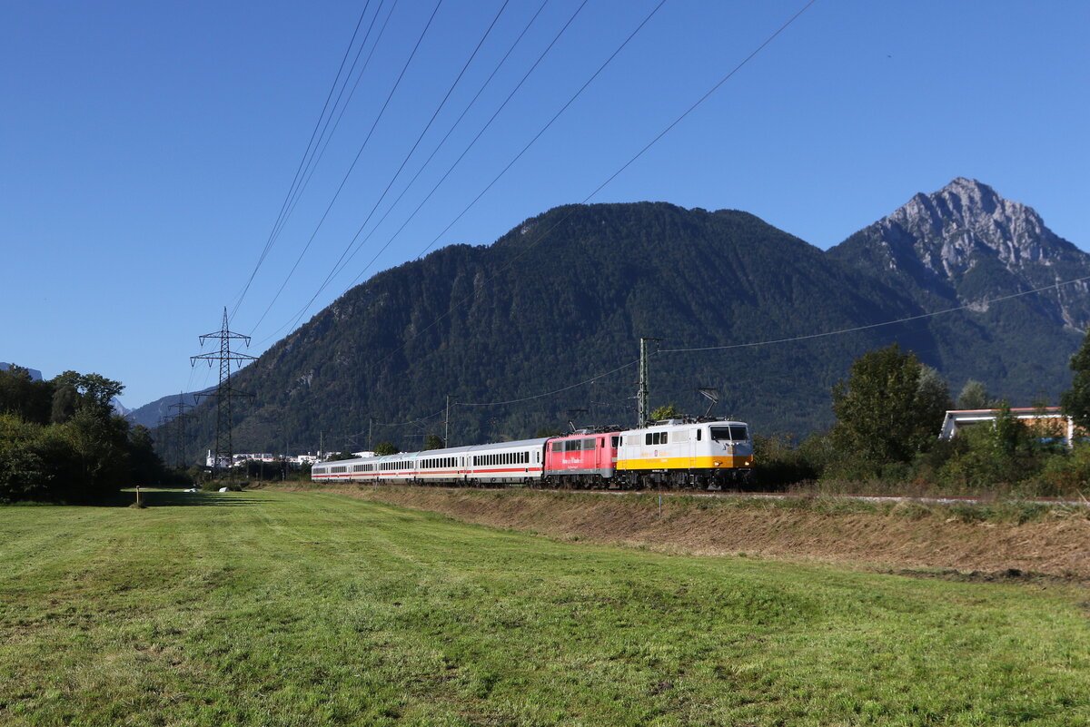 101 099 mit dem "IC Königssee" aus Freilassing kommend am 8. Februar 2023 bei Sossau.