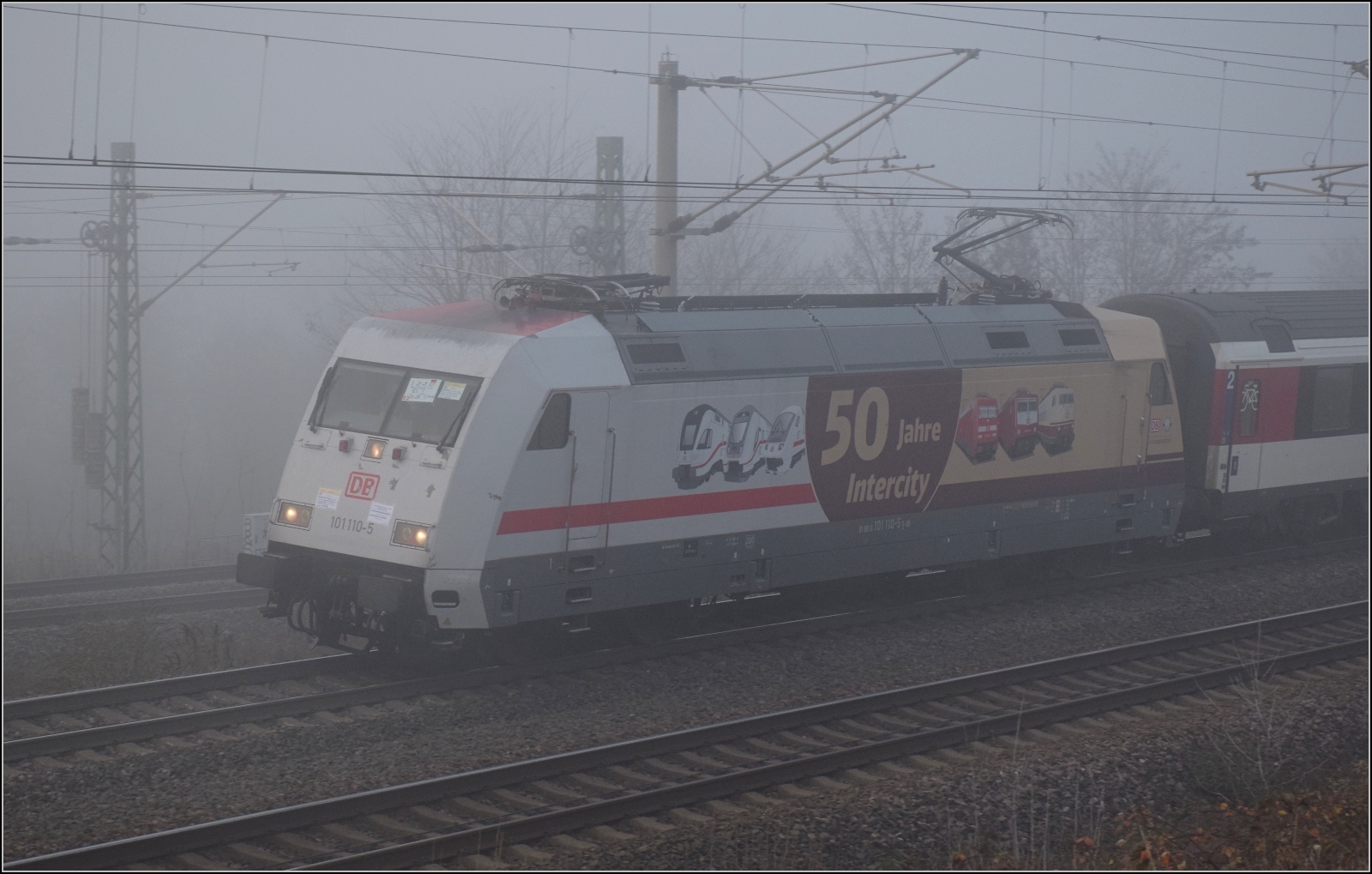 101 110 mit dem allerletzten EC nach Basel, dem EC 9. Ab dem Fahrplanwechsel fährt kein Eurocityzug mehr in die Schweiz. Schliengen, Dezember 2025. Olli