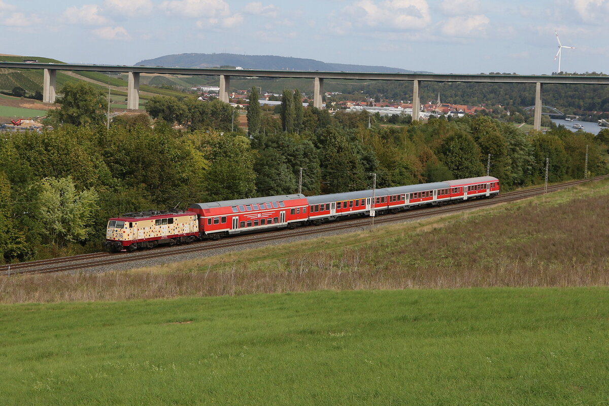 111 057 war am 21. Februar 2023 bei Sossau im Chiemgau auf dem Weg zu ihrem nächsten Einsatz nach Freilassing