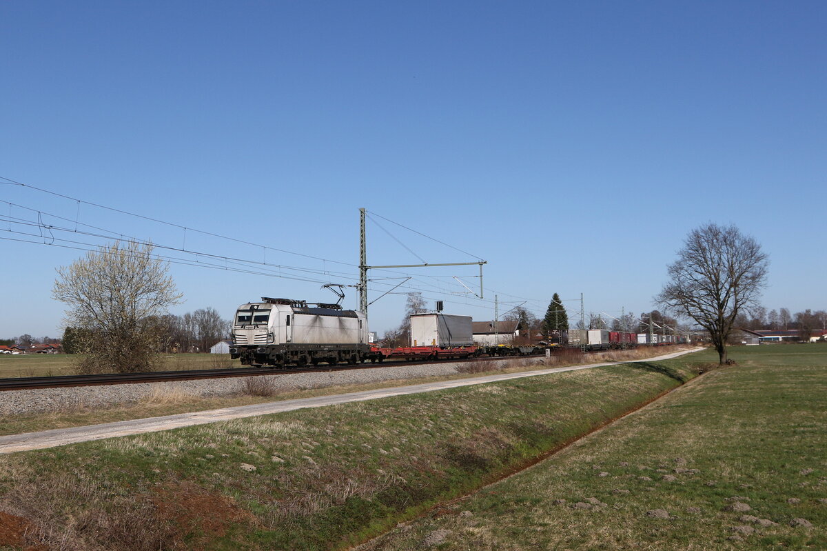 6193 810 von "Rurtal Bahn Cargo" mit einem "KLV" aus Salzburg kommend am 19. März 2026 bei Axdorf.
