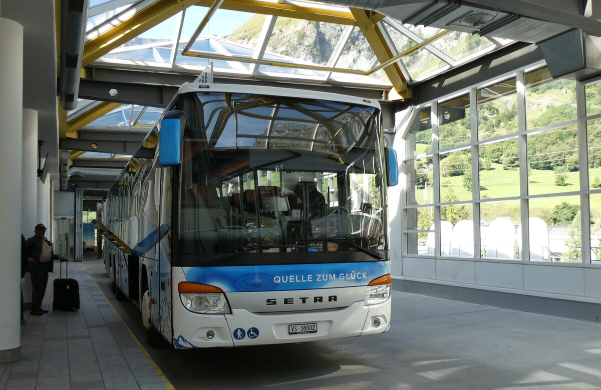 (095'714) - LLB Susten - Nr. 14/VS 38'014 - Iveco/Auwärter am 23. Juni 2007 beim Bahnhof Leuk