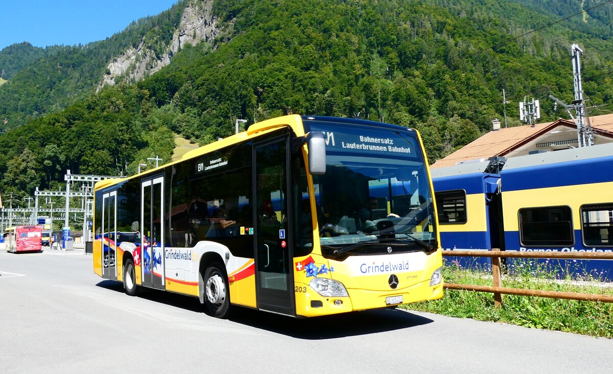 (279'361) - GrindelwaldBus, Grindelwald - Nr. 203/BE 905'203 - Mercedes am 25. August 2025 beim Bahnhof Zweilütschinen