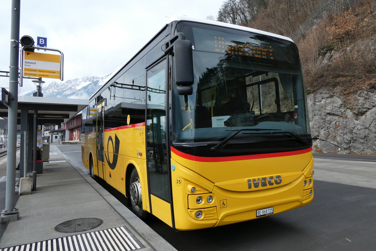 (284'352) - Flück, Brienz - Nr. 25/BE 868'725/PID 11'594 - Iveco am 26. Januar 2026 beim Bahnhof Brienz