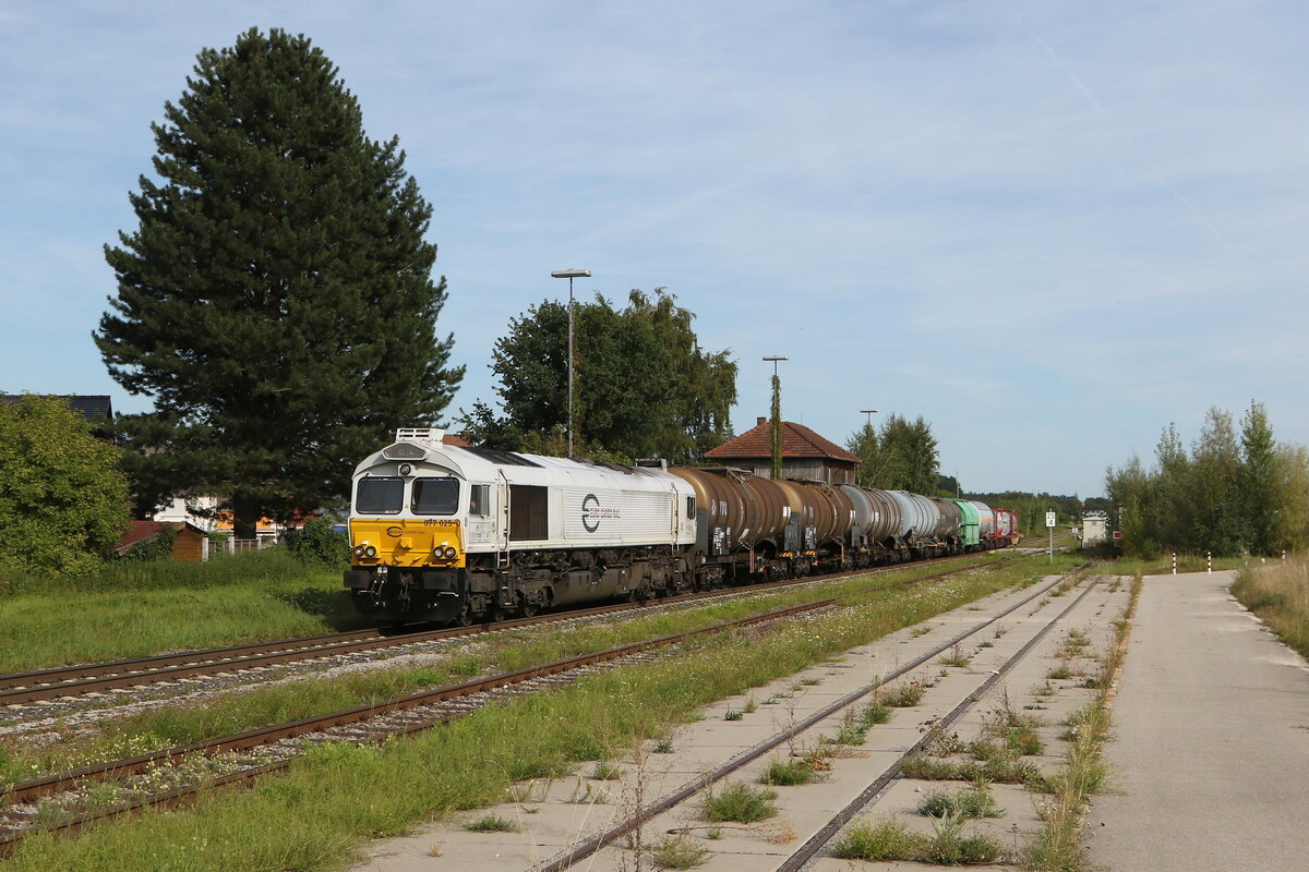 247 051-6 mit einem Kesselwagenzug aus Burghausen kommend am 26. August 2015 in Pirach.