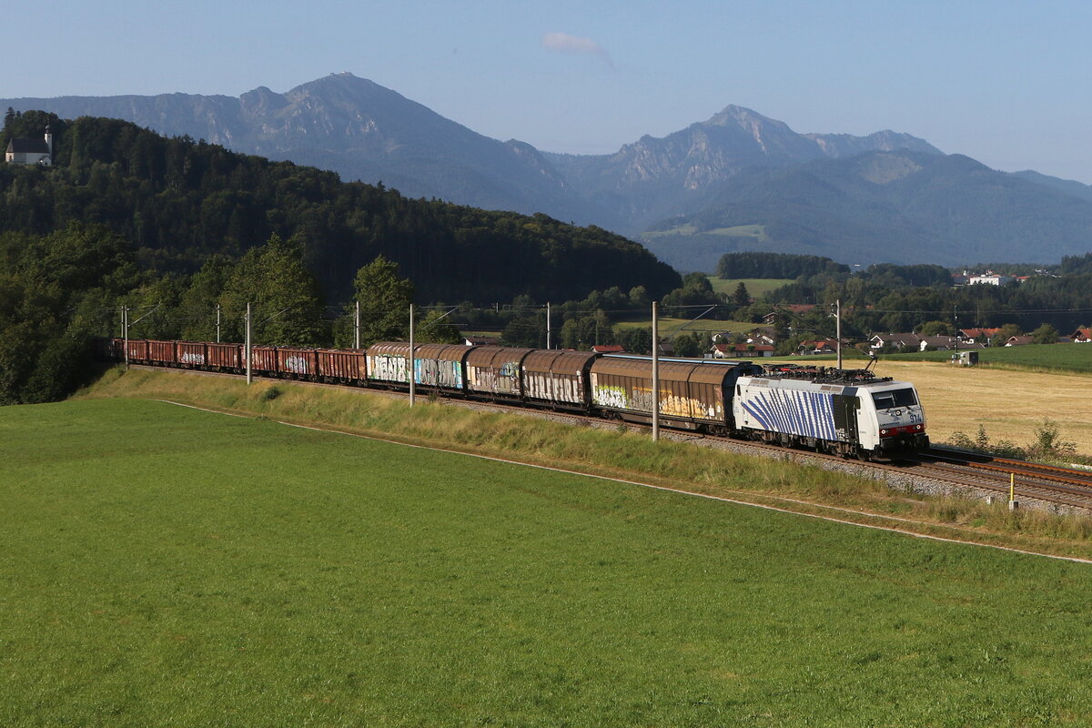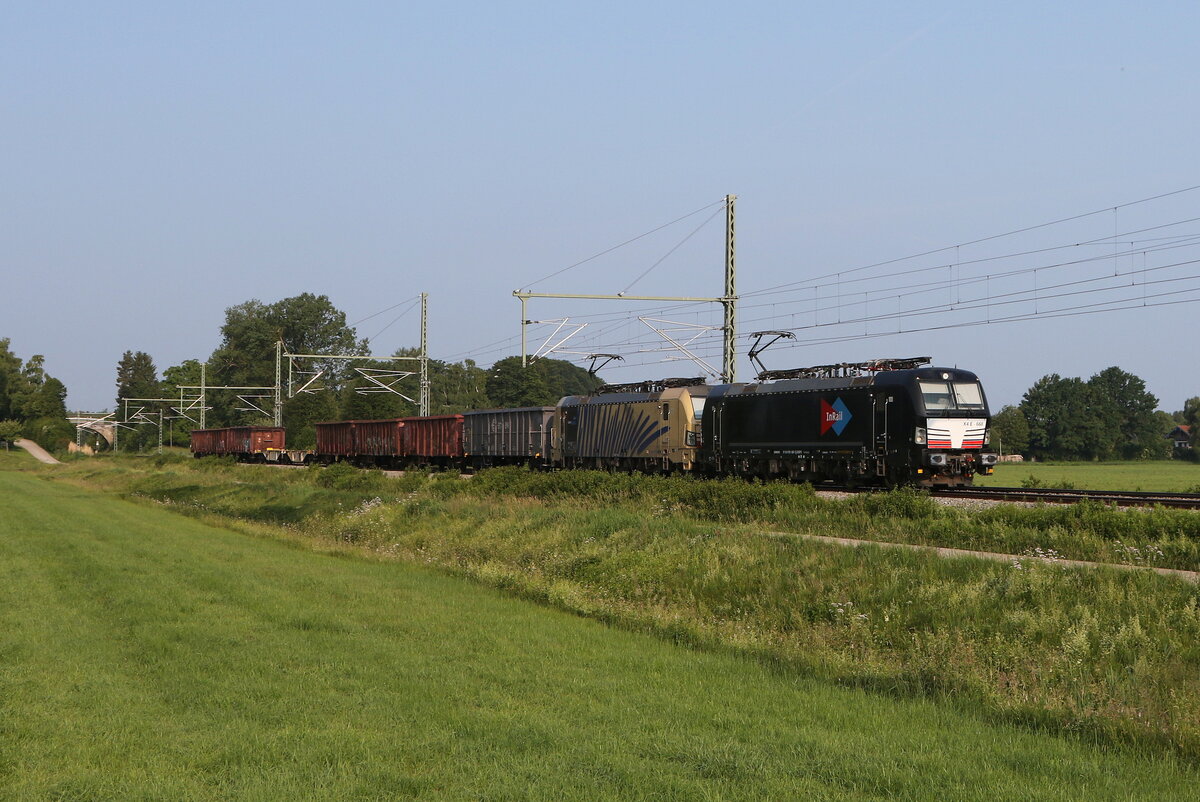 185 663-2 mit dem "Ekol"-Zug aus Salzburg kommend begegnet am 27. April 2016 bei Weisham einem "Meridian-Zug".