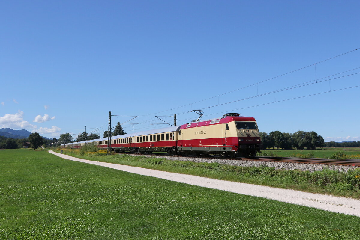 193 777 war mit dem "AKE-Rheingold" am 29. Dezember 2019 bei Grabenstätt in Richtung Wörthersee unterwegs.