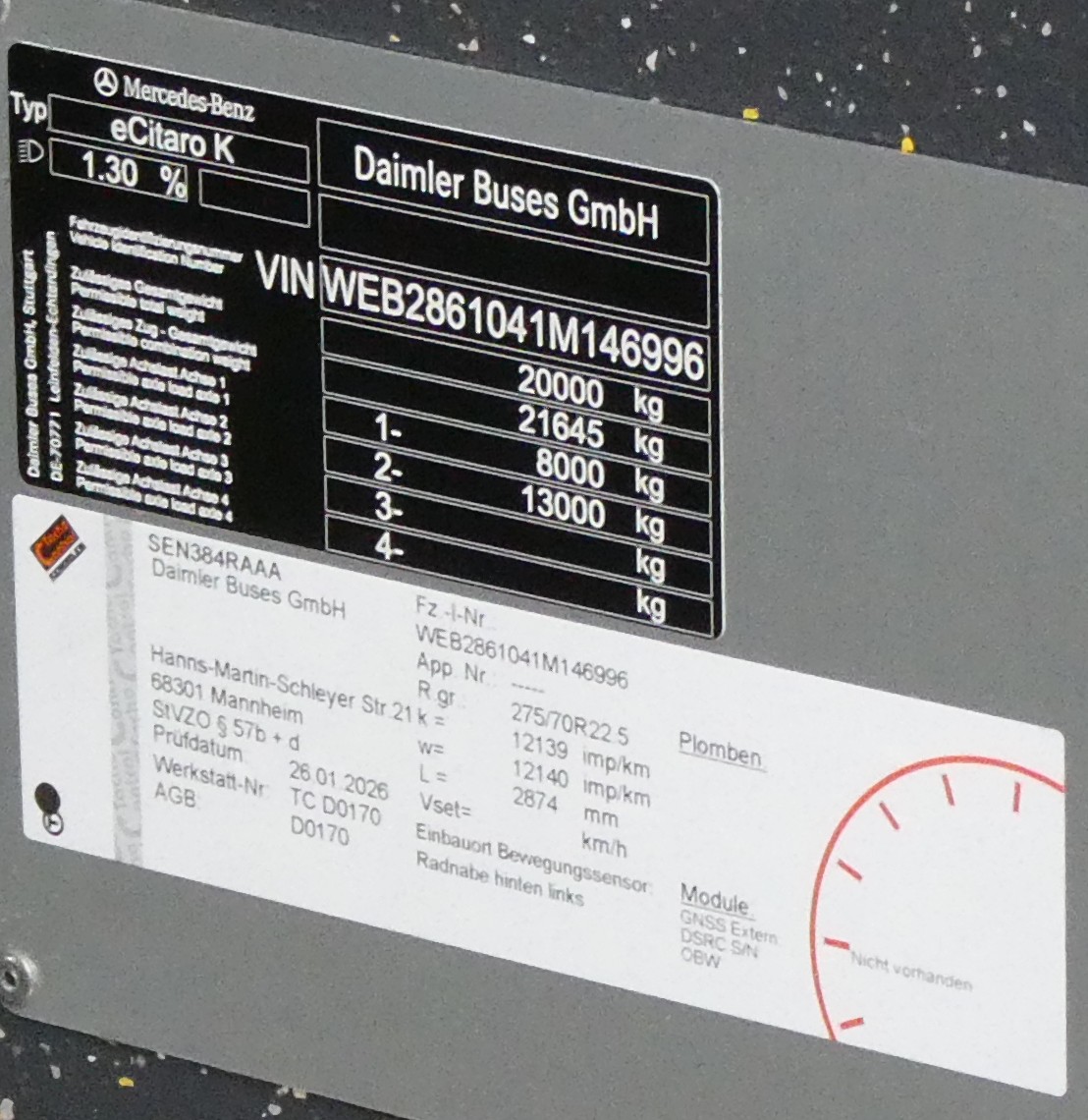 (284'838) - Typenschild - STI Thun eCitaro K - am 12. Februar 2026 in Thun, Garage