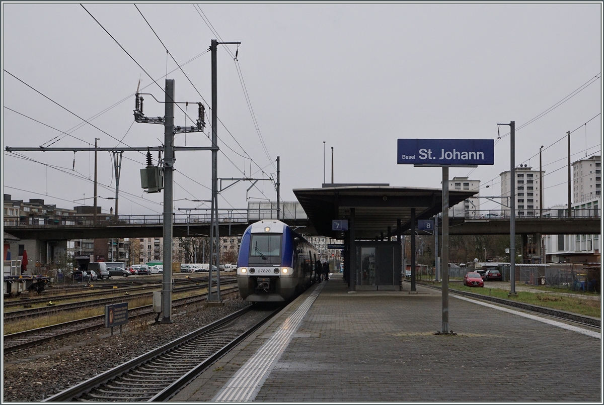 Die SNCF BB 26144 mit einem TER 200 auf dem Weg nach Strasbourg bei der Durchfahrt in Basel St.Johann.