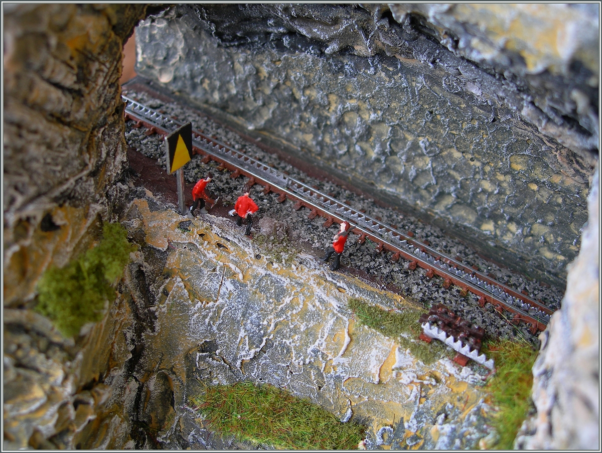 Tag der Modelleisenbahn / 2. Dezember: Fahrleitungsversuchsfahrten mit meinem Bhe 2/4 204, welche dazu führten, dass ich auf der Anlage KEINE Fahrleitung spannte, da die Widerstand des Stromabnehmers in dieser kleinen Baugrösse zu stark ist und den Zug ausbremst.