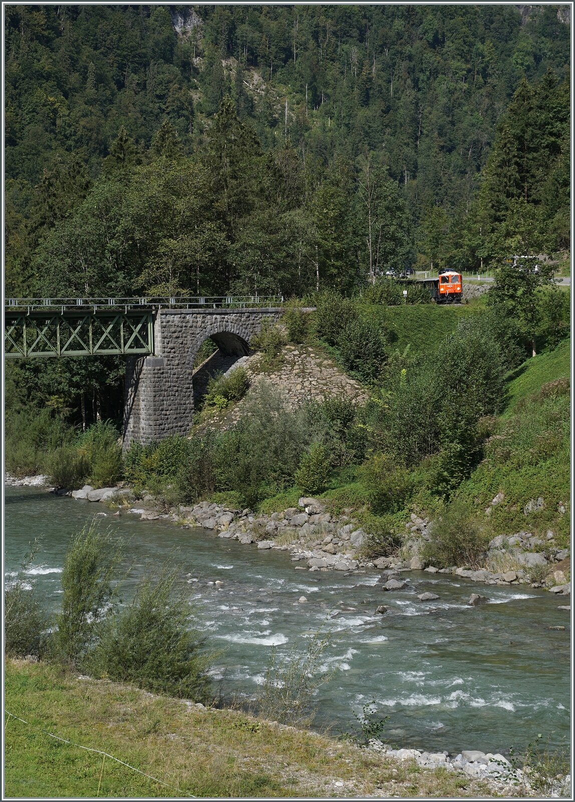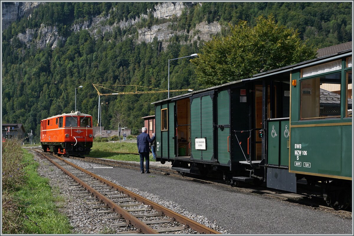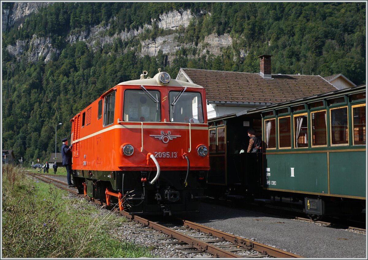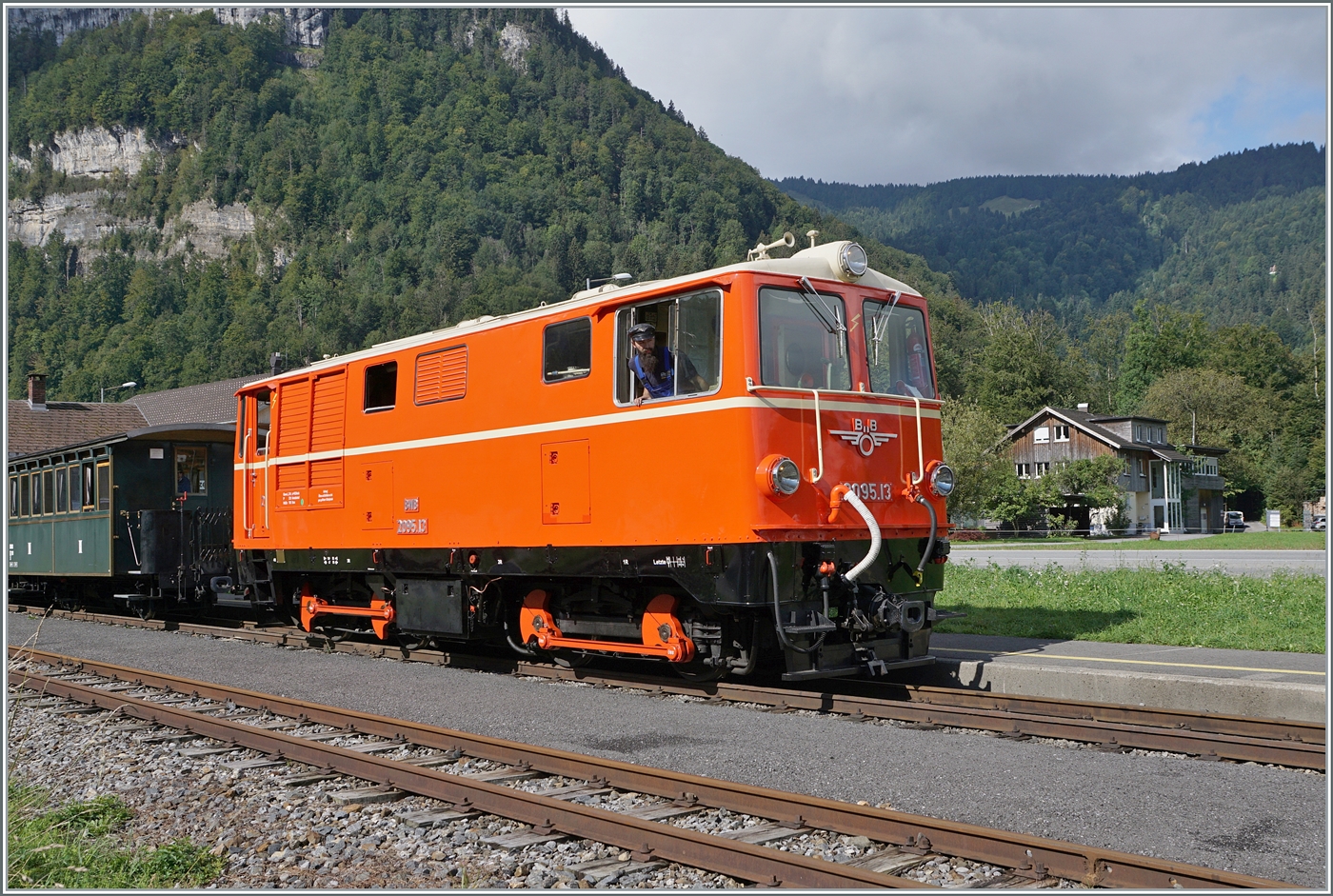 Die Bregenzer Wald Bahn (ex ÖBB) 2095.13 wartet in Schwarzenberg mit ihren "Vormittags"-Zug auf die Abfahrt nach Bezau.