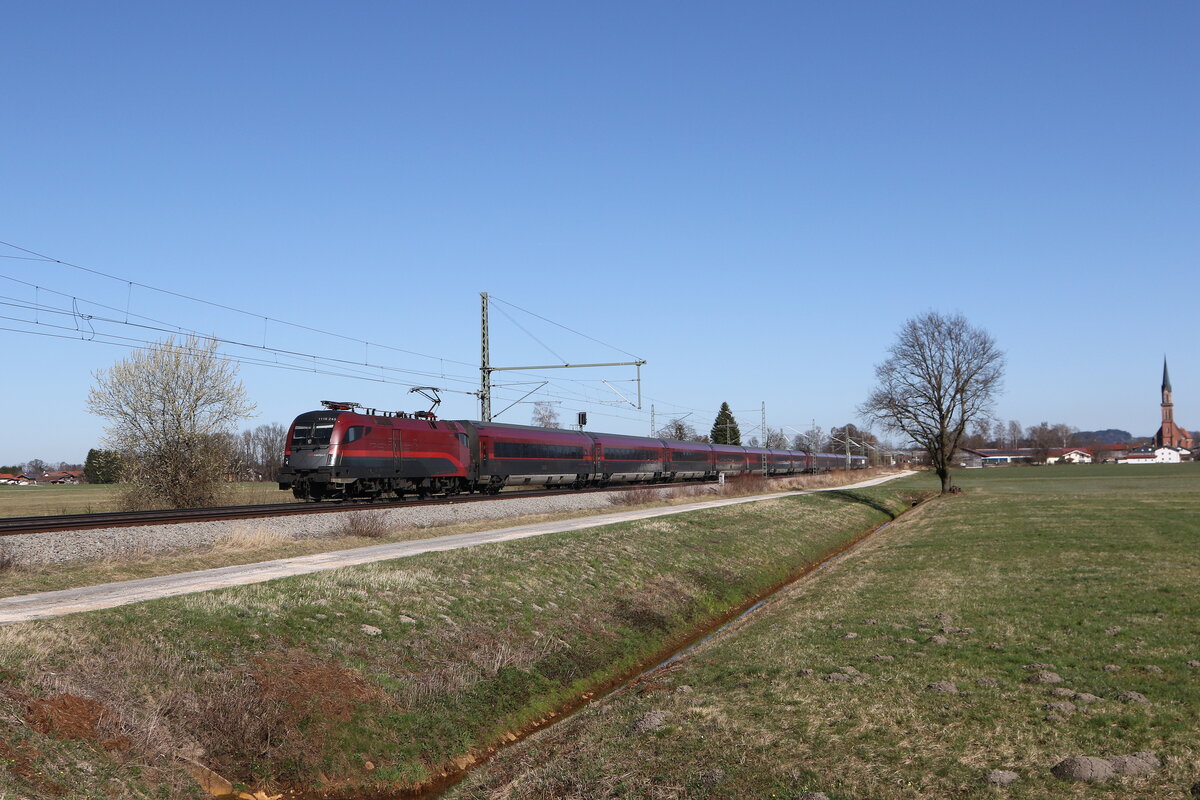 1116 181 mit einem "EC" aus Salzburg kommend am 28. April 2021 bei Grabenstätt im Chiemgau.