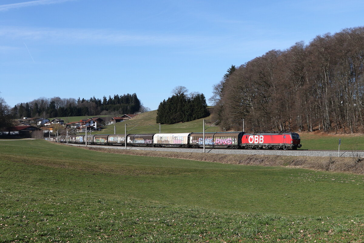 1293 192 mit einem gemischten Güterzug am 2. September 2022 bei Grabenstätt im Chiemgau.