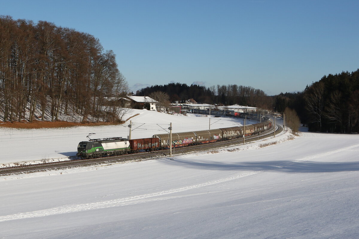 193 201 mit einem "EKOL-KLV" aus Salzburg kommend am 10. September 2023 bei Axdorf.