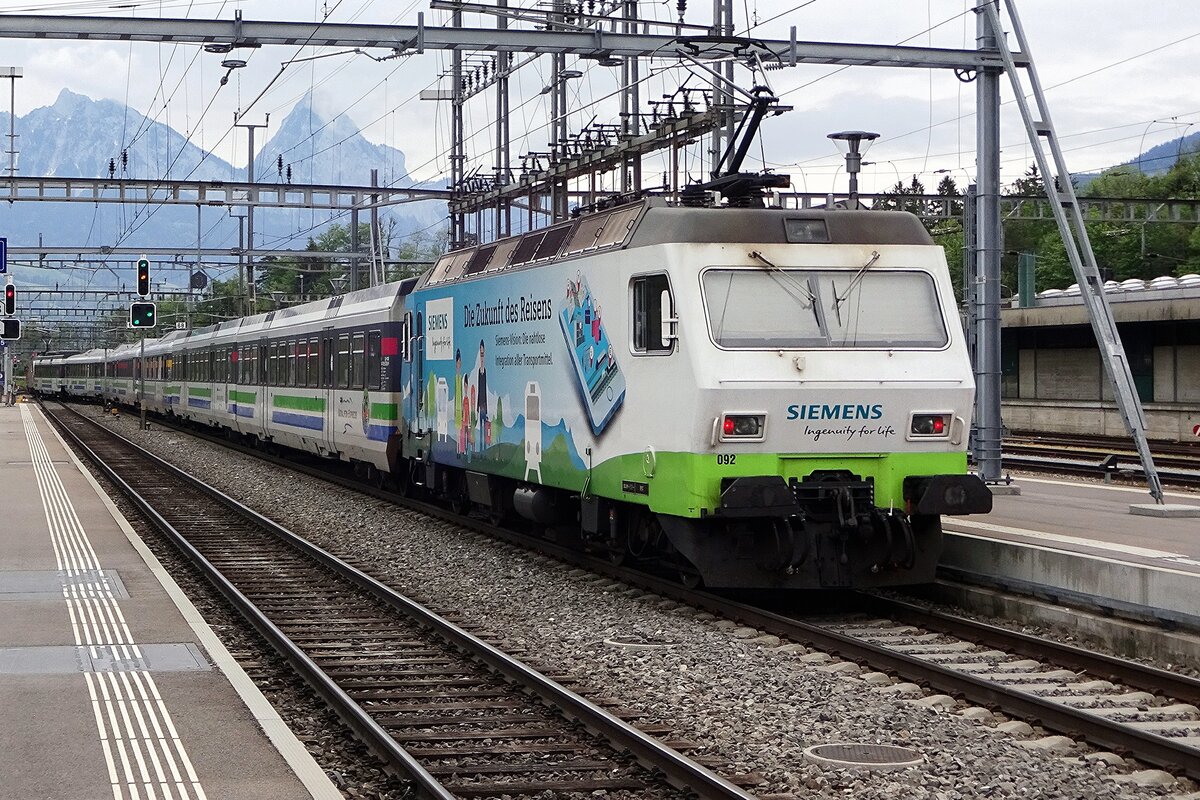 Der SOB RBDe 94 85 7 566 076-6 CH-SOB mit seinem ABt 50 85 800 35 176-7 CH-SOB in Arth Goldau. 24. Juni 2018