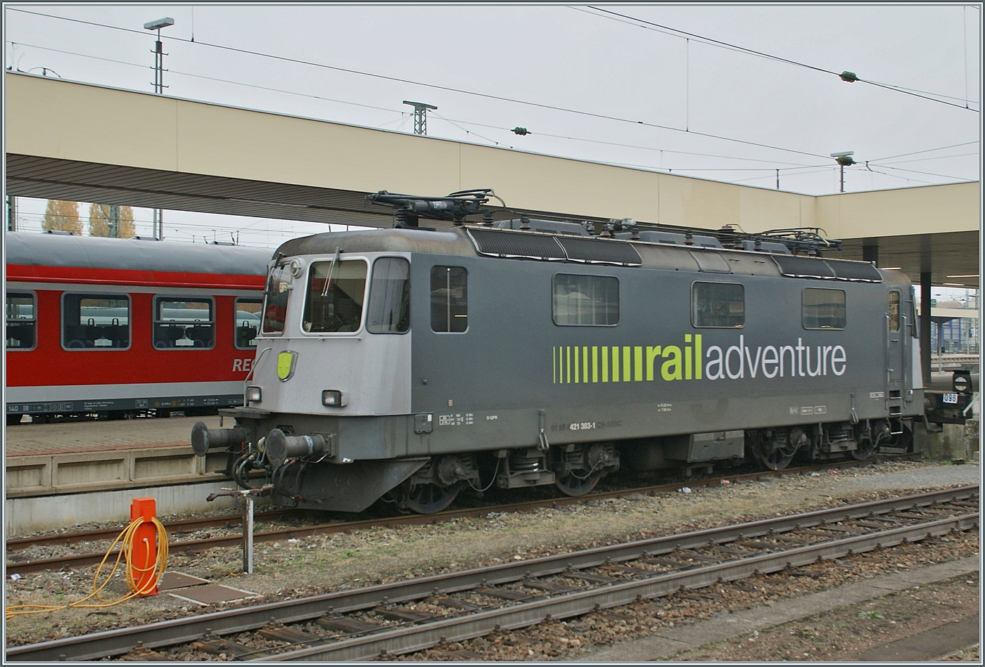 ICE 1 begegnet auf der Grenze einem LKW-Walter-Zug. Basel, Dezember 2017.