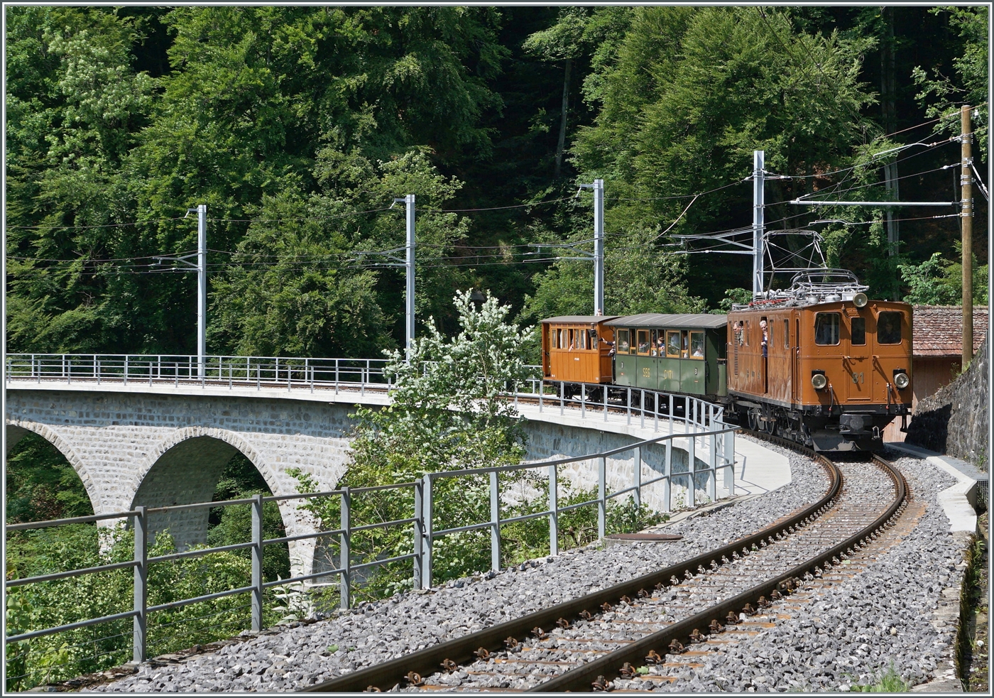 La DER de la Saison 2024 / Das Saison Ende 2024 der Blonay-Chamby Bahn - Der Schluss vom Ende: Dank der Zeit-Umstellung verkehrt der aller letzte Zug der Saison in der blauen Stunde. Die Bernina Bahn RhB Ge 4/4 81 der Blonay Chamby Bahn brachte den letzten Zug nach Blonay und wartet nun mit dem Leermaterialzug auf die Rückfahrt nach Chaulin. Somit ist die Saison 2024 endgültig vorbei - was bleibt sind viele schöne Erinnerungen und Fotos, und natürlich ein grosses Danke-Schön an die freiwilligen Mitarbeiter der Blonay Chamby Bahn für die einmal mehr sehr gelungene Saison!