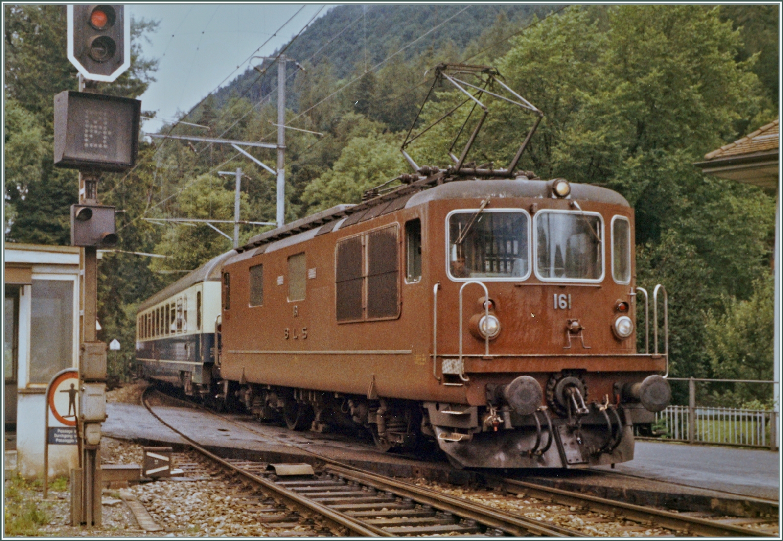 A single car unit of the Berner Oberland Bahn (BOB) standing at Interlaken Ost in late August 1962.