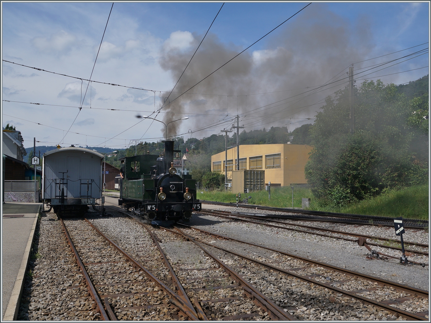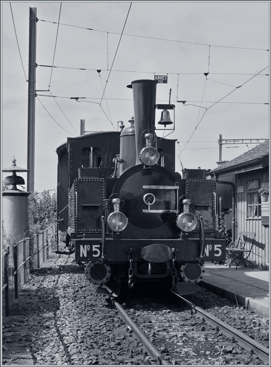 Die eigenwillig zusammengesetzte Komposition ergab dann in Vevey ein herliches "Kaisermanöver; im Bild die LEB G 3/3 N° 5 (Baujahr 1890) die sich dampfend in Bewegung setzt.