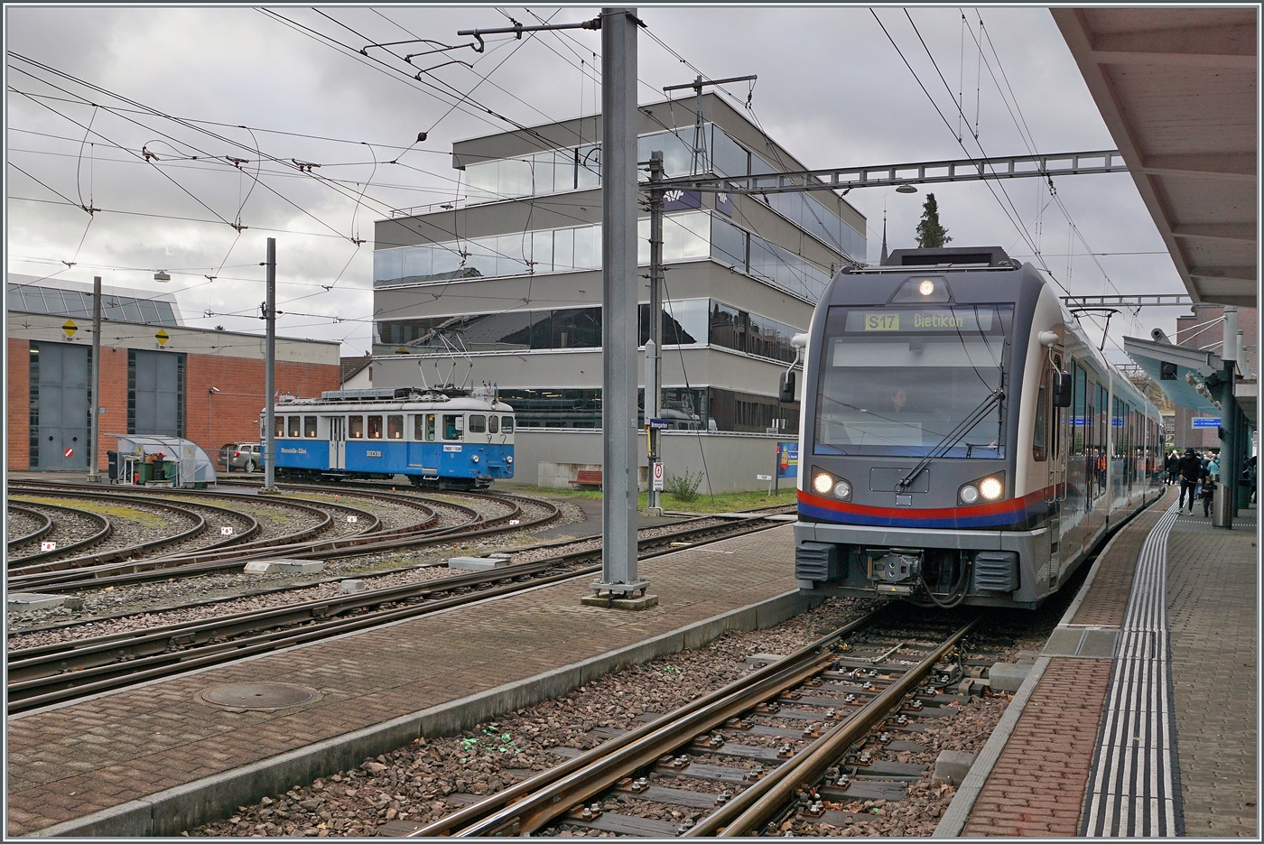 Zwei AVA BDWM ABe 4/8 "Diamant" warten in Wohlen auf die Abfahrt als S17 nach Dietikon.