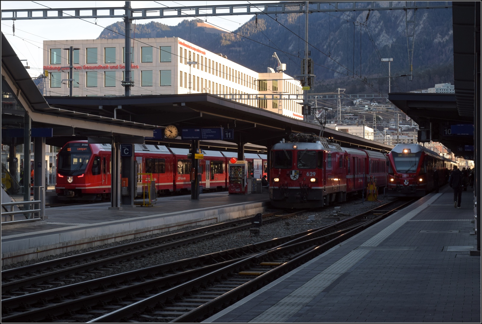 Die SBB Cargo Am 843 062-1 eine MaK 1700 BB fährt am 01.11.2019 mit einem Güterzug durch den Bahnhof Chur Richtung Landquart.