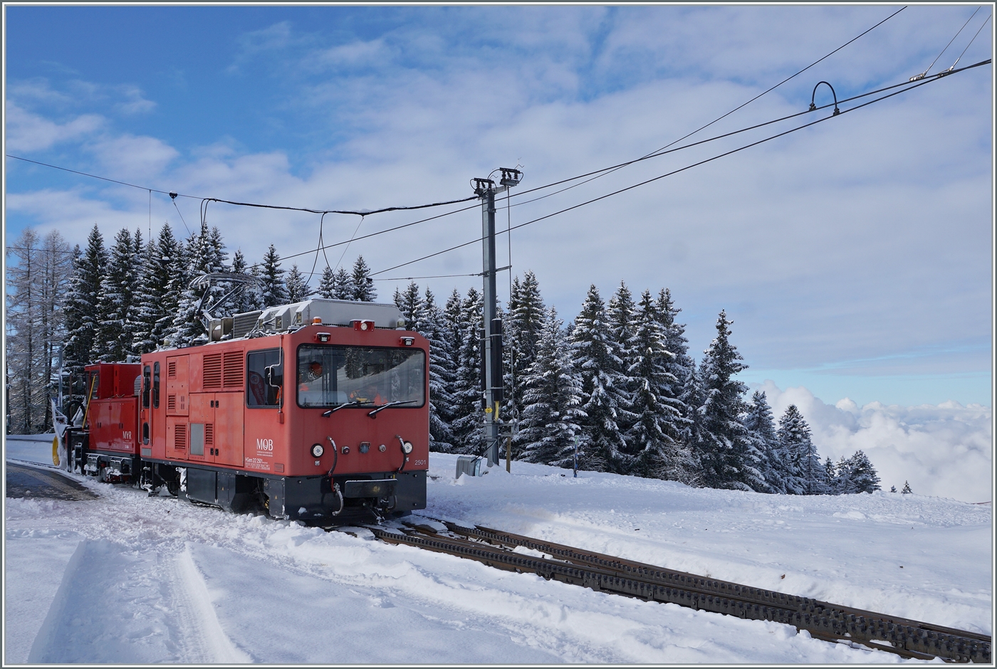MVR HGem 2/2 2501 und MOB Hem 2/2 2502 in Vielfachsteuerung in Chernex. (Inbetriebnahme durch Stadler).
