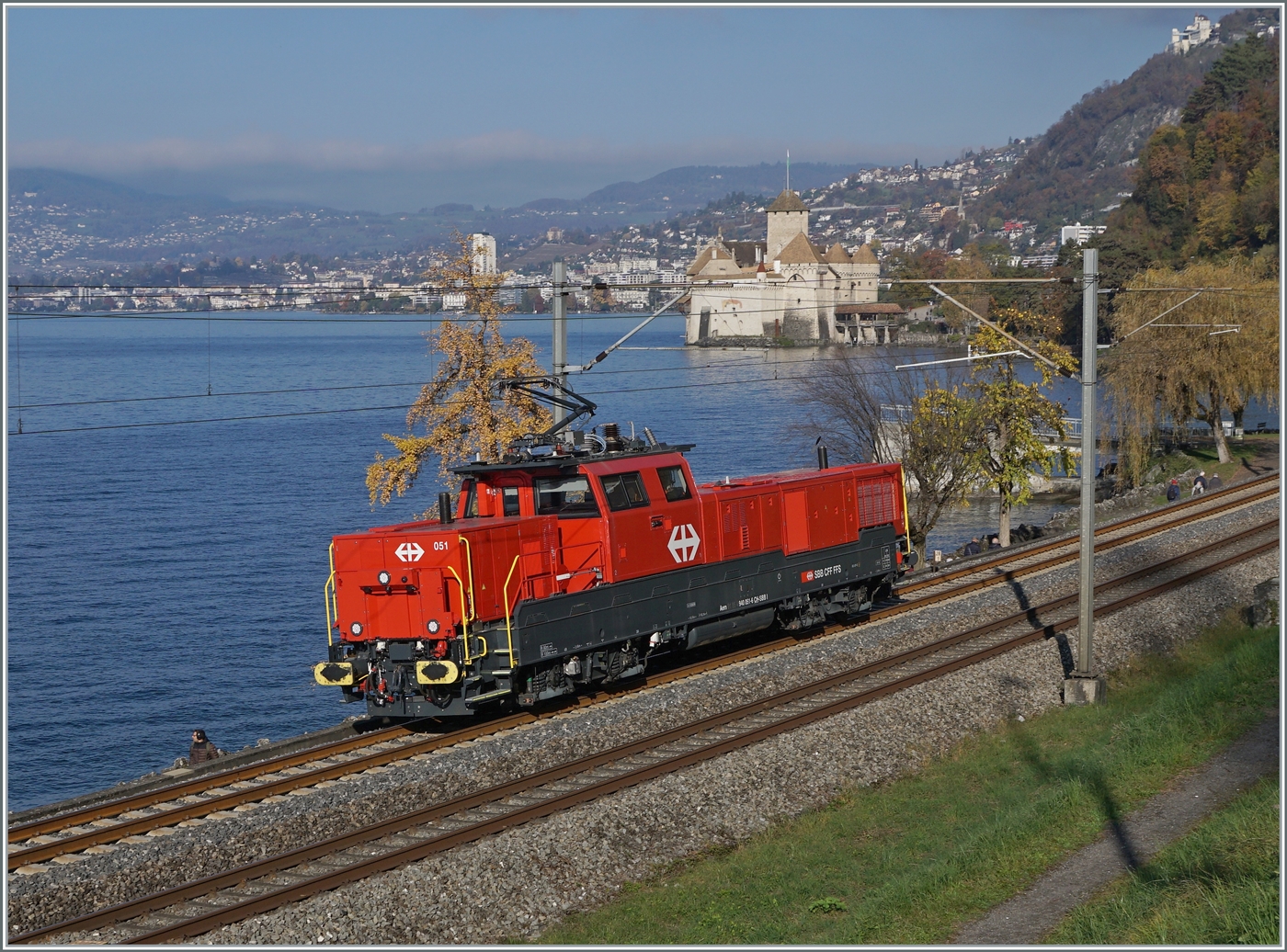 Die SBB Aem 940 006 (91 85 4 940 006-0 CH SBBI) schiebt mit Schrittgeschwindigkeit einen zu "zerlegennden" Güterzug über den Ablaufberg von Lausanne Triage.