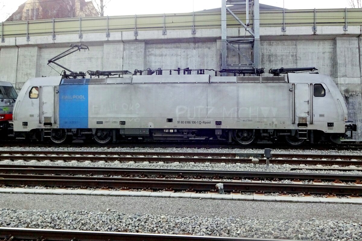 Zwei Crossrail-Traxx 2E in Tecknau, eine Maschine im Macquarie-Anstrich und die zweite mit Crossrail-Logo versehen, ziehen einen LKW-Walter-Zug richtung Basel. Juli 2016.