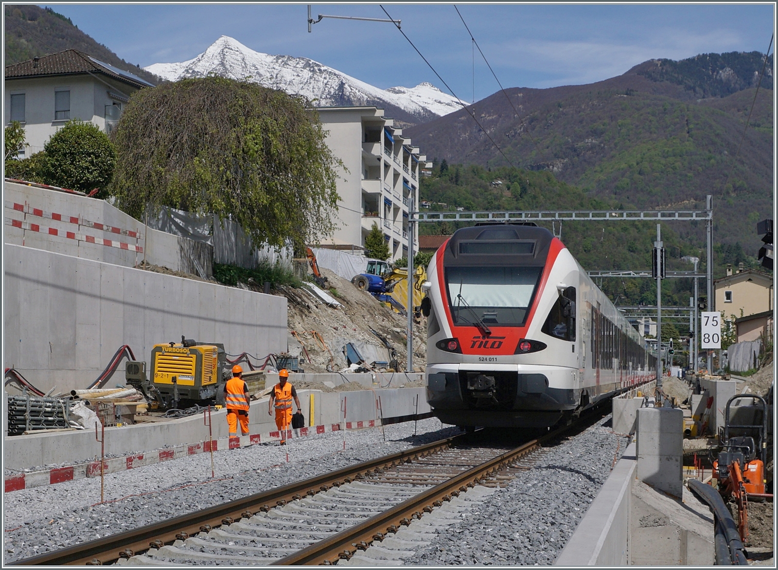 Die SBB Re 4/4 II 11164 wartet mit einem "Gotthard"-IR in Locarno auf die Abfahrt Richtung Norden.