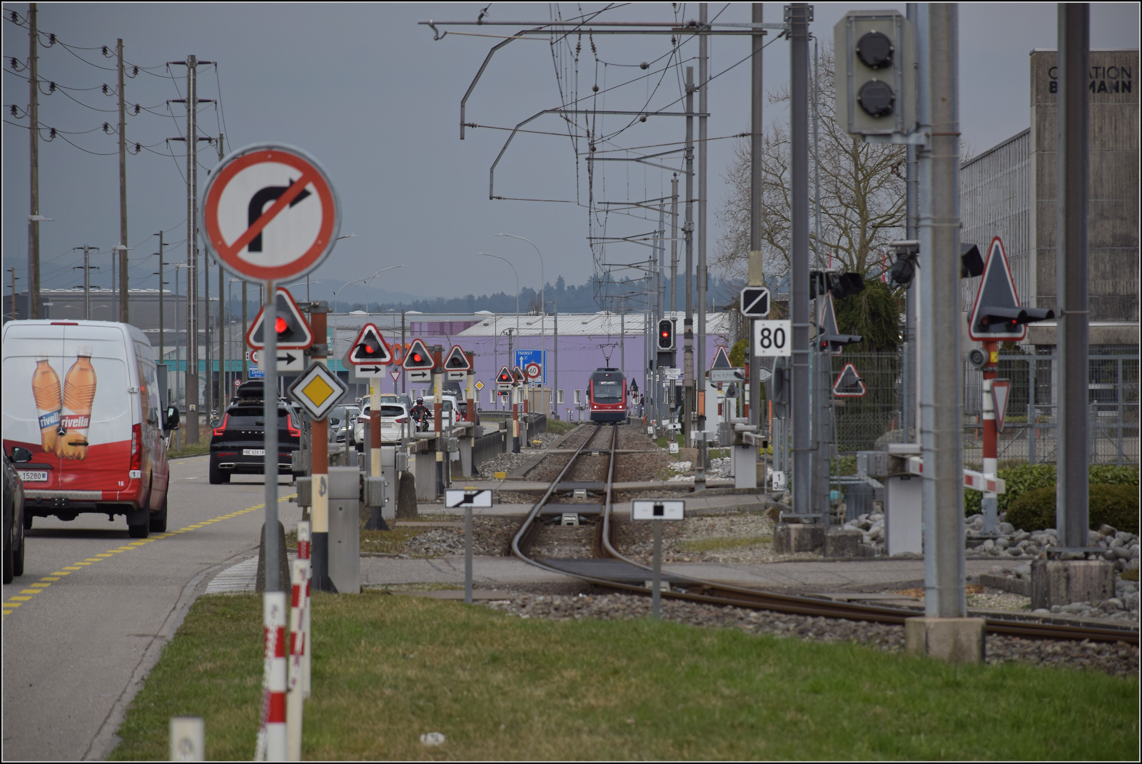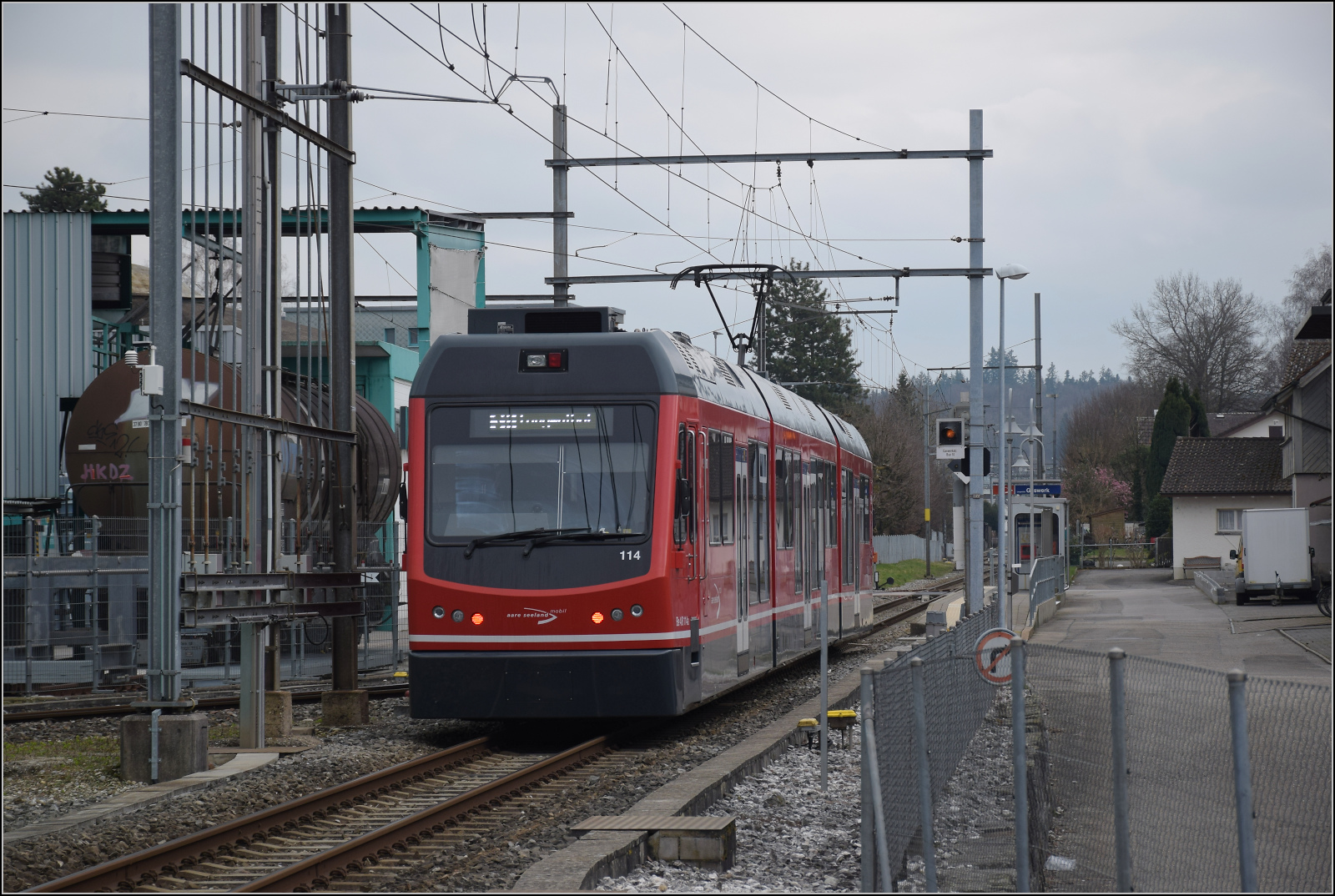 Die SBB Re 460 105-0 beäugt etwas skeptisch das neue MOB Farbkonzept, welchem das bunte "Bipperlisi" Be 4/4 1007 als erstes zum Opfer fiel.