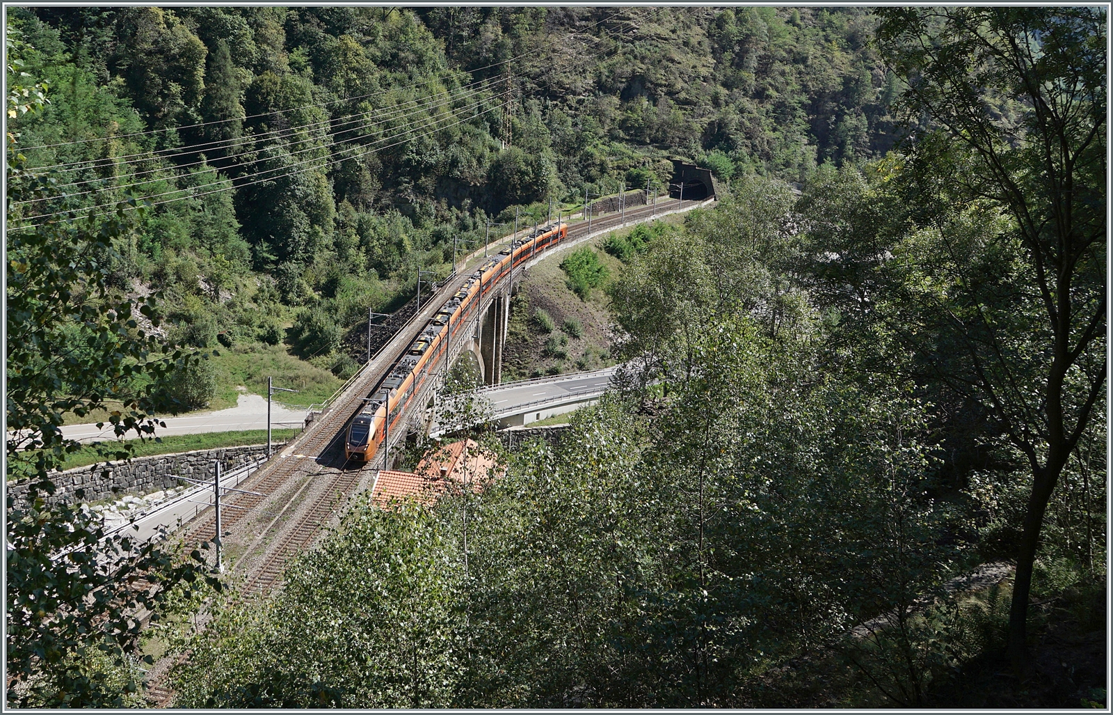 Der Bahnhof von Giubiasco wird für den Anschluss des Monte-Ceneri Basis-Tunnel umgebaut, und so will die SBB Re 460 001-1 Coop-Pro Natura mit ihrem IC nach Zürich nicht so recht in die staubige Baulandschaft passen.
