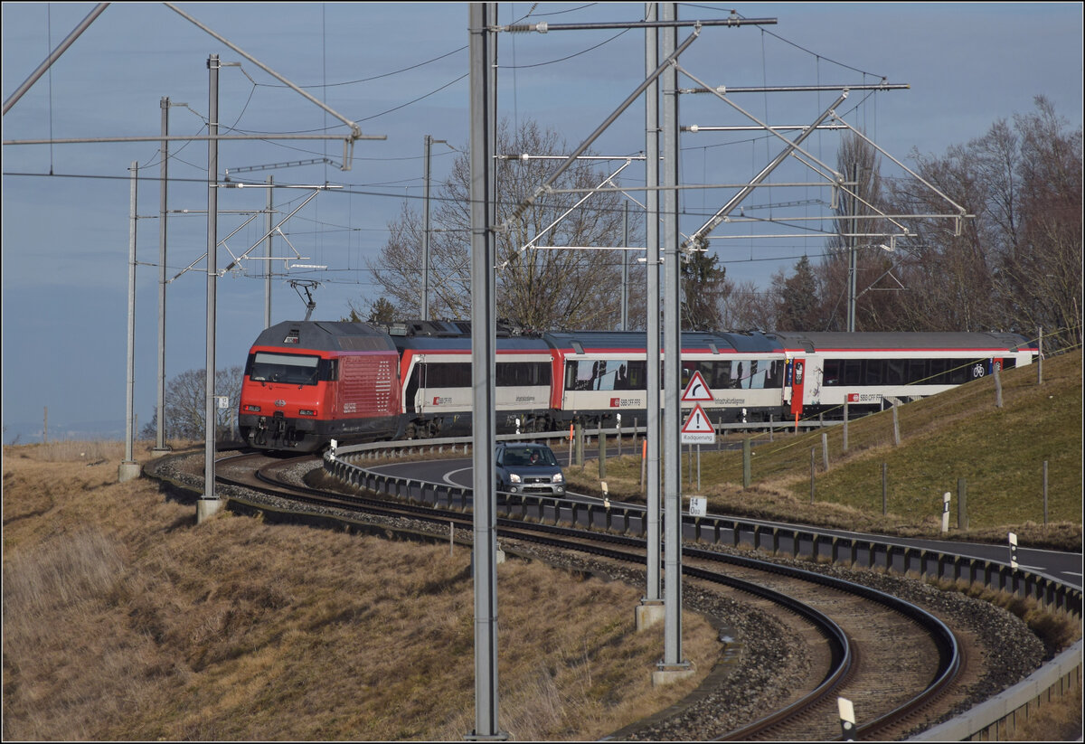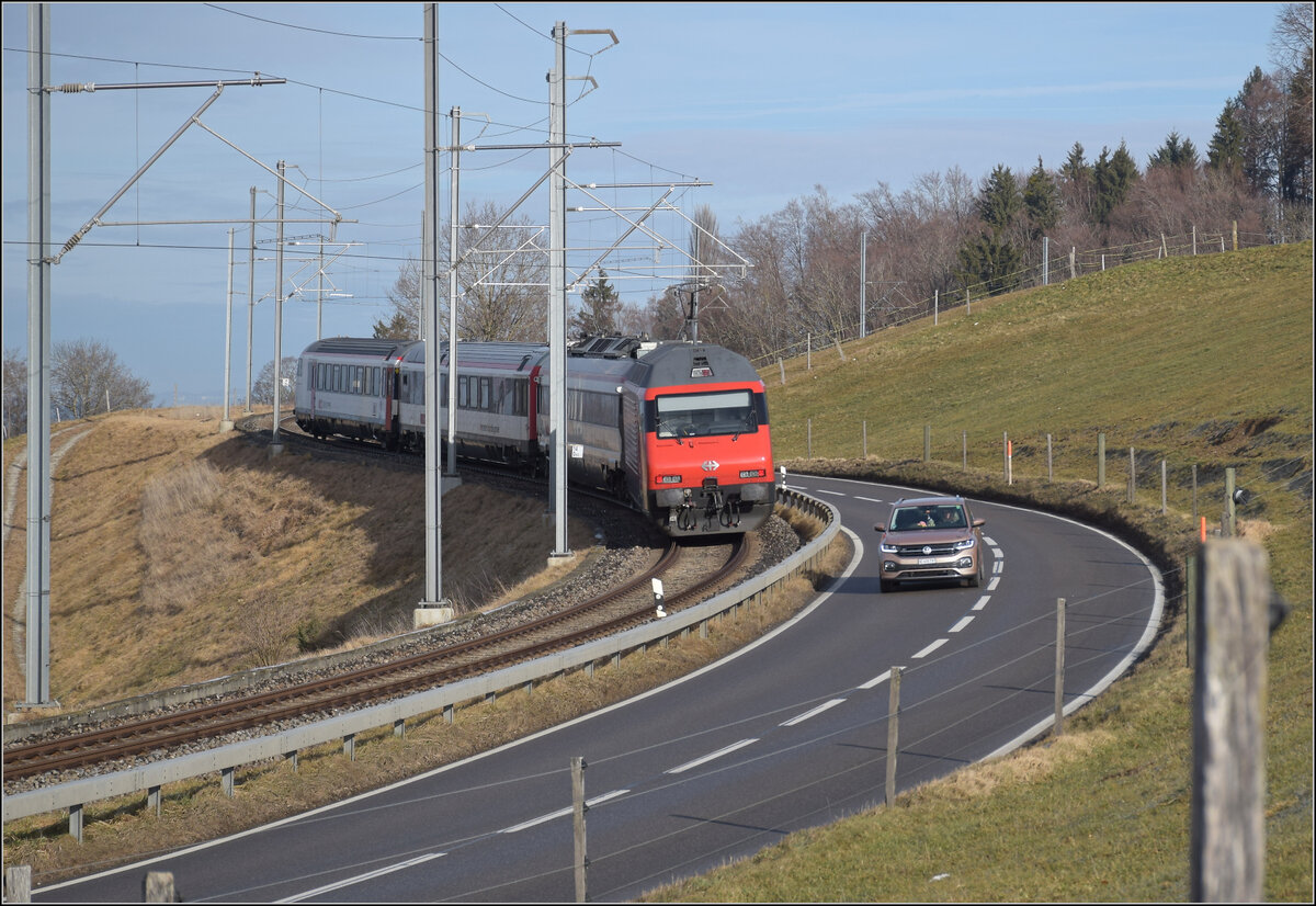 Auf den ersten Blick ein belangloses Bild einer RE 460 mit einem IR90 in Montreux; erst der zweite, genauere Blick offenbart das Besonderes: Die Lok, die Re 460 066-4, kam schon weit herum, bzw. war zu Testfahrten in Norwegen, was die NSB und wohl in der Folge auch die VR dazu bewogen, "Lokomotiven 2000" zu bestellen. Gleich nach der Lok noch einer weitere Besonderheit: ein frisch revidierter EW IV in den neuen Farben.