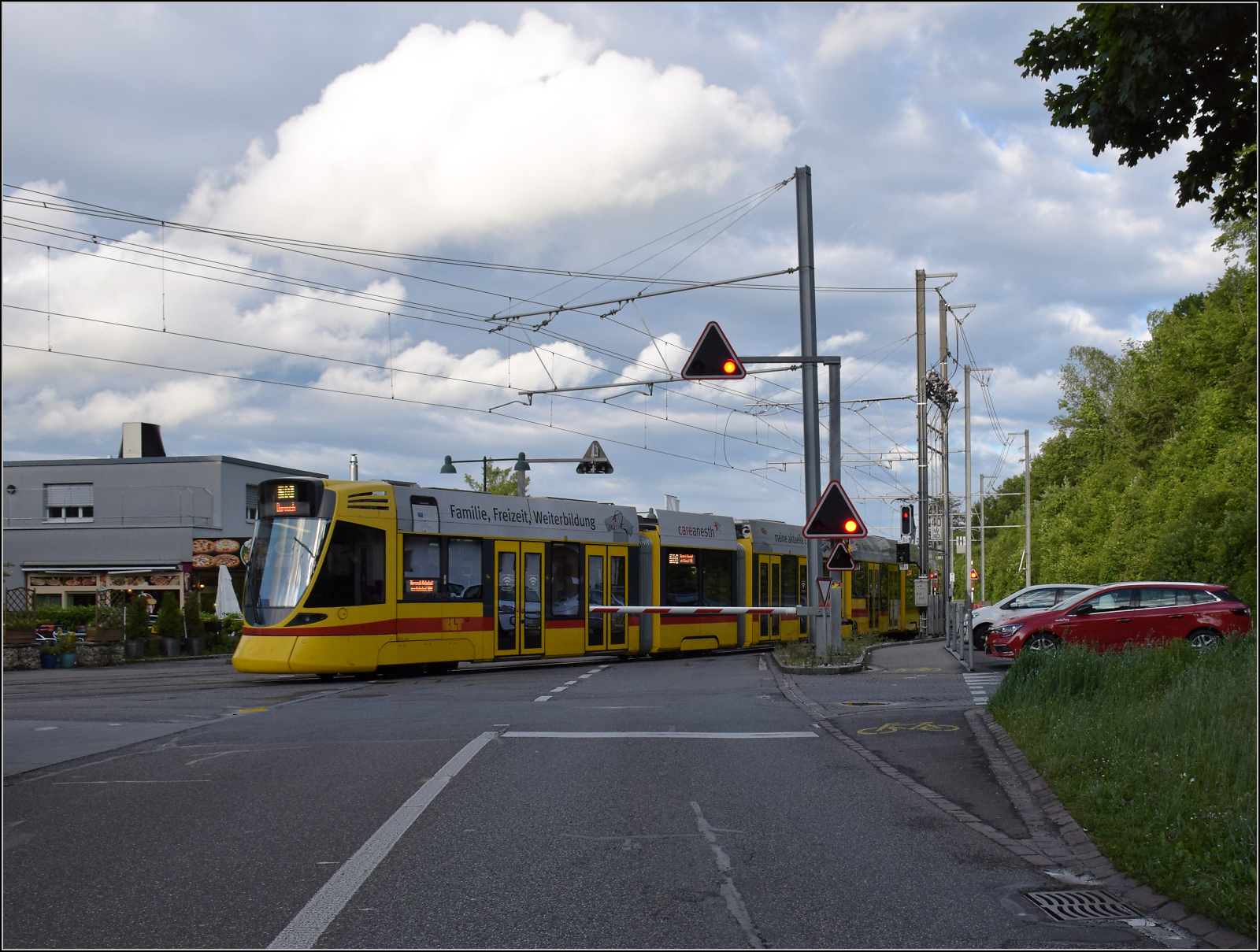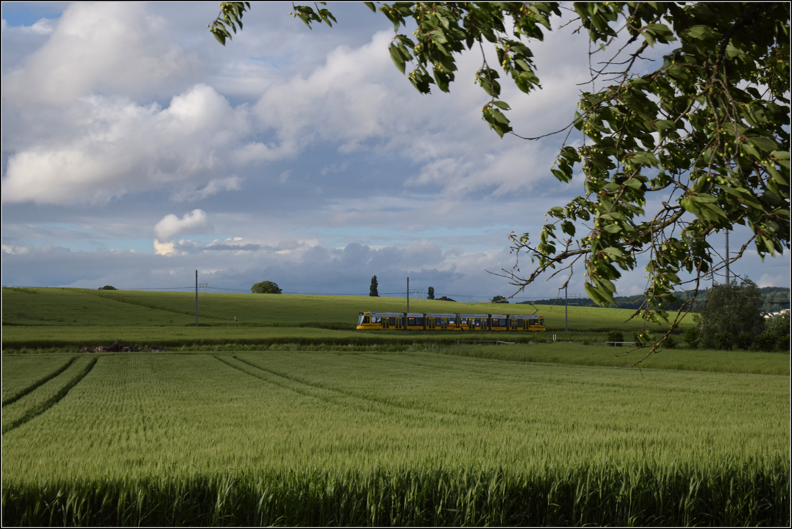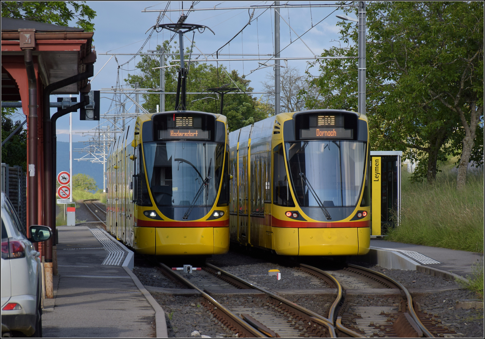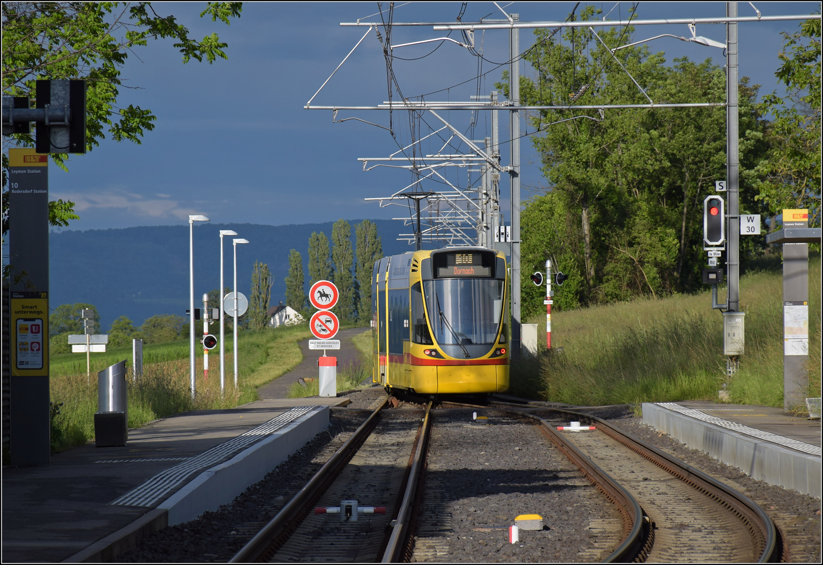 Ein Be 6/10 der BLT durchfährt am 08.08.2015 auf dem Weg von Dornach nach Ettlingen Münchenstein