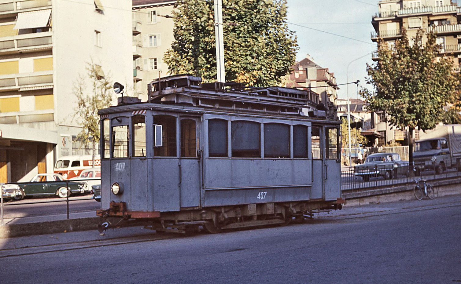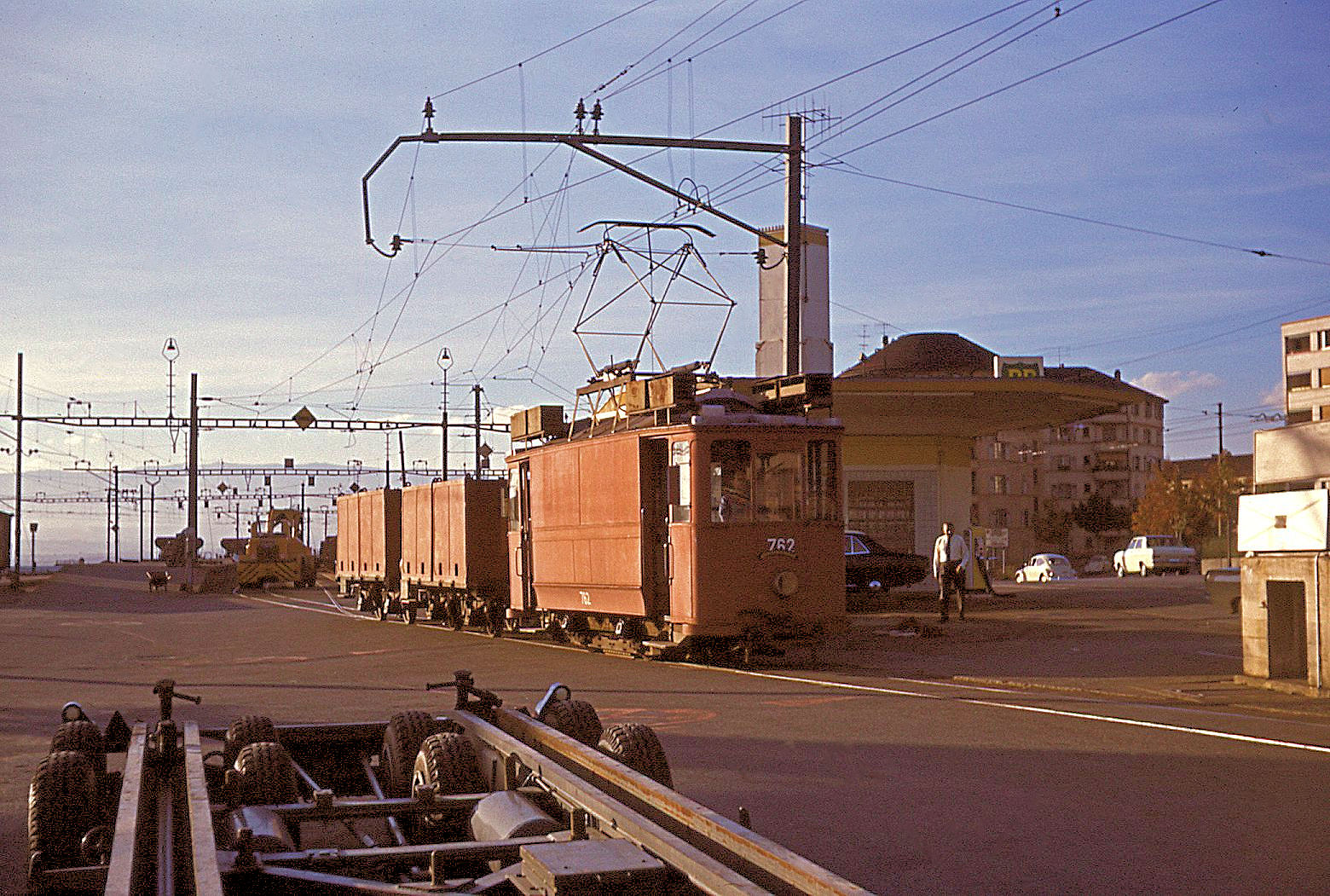 Ein LEB Be 4/8 Typ "VEVEY" in auffälliger Lausanne-fm Werbung in Echallens.