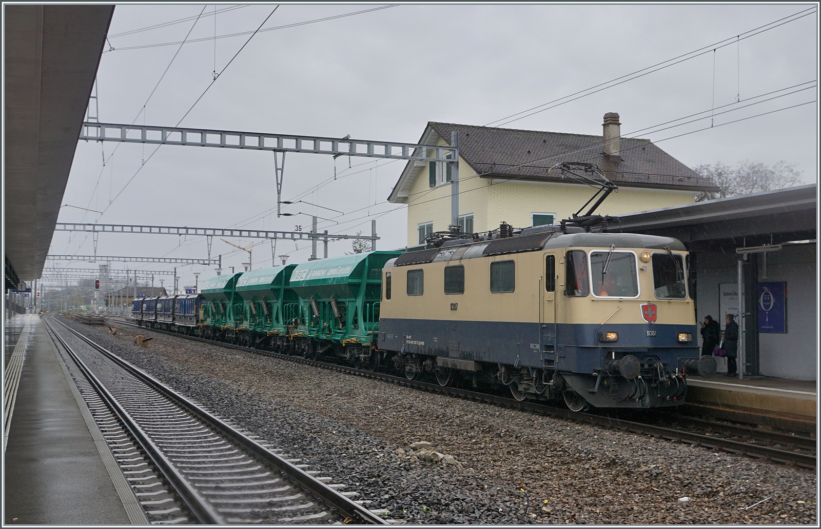 Die SNCF BB 37 060 mit ihrem Güterzug von Lyon nach Lausanne Triage bei seiner Durchfahrt in Morges.