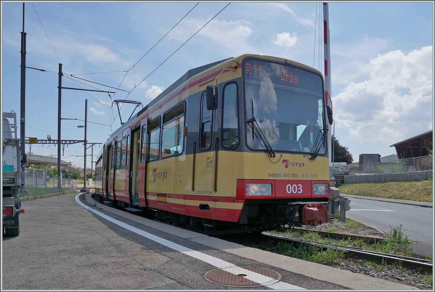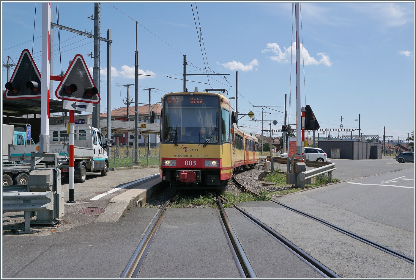 Die Ee 2/2 2 in Orbe; im Dépot versteckt sich der BDe 4/4 13.