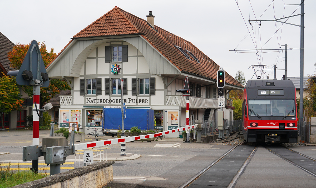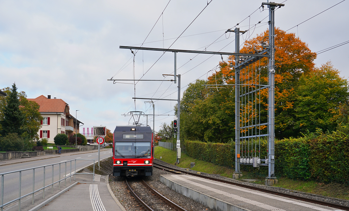 Der ehemalige CEV MVR GTW Be 2/6 7001 ist jetzt als Be 2/6 511 bei der asm in Einsatz und wurde vor kurzem vom Seeland in den Oberaargau transportiert um auf der Stecke Langenthal - St. Urban einen defekten Be 4/8 zu ersetzen. Im Bild erreicht der Be 2/6 von Langenthal kommend in Kürze den Halt St. Urban.