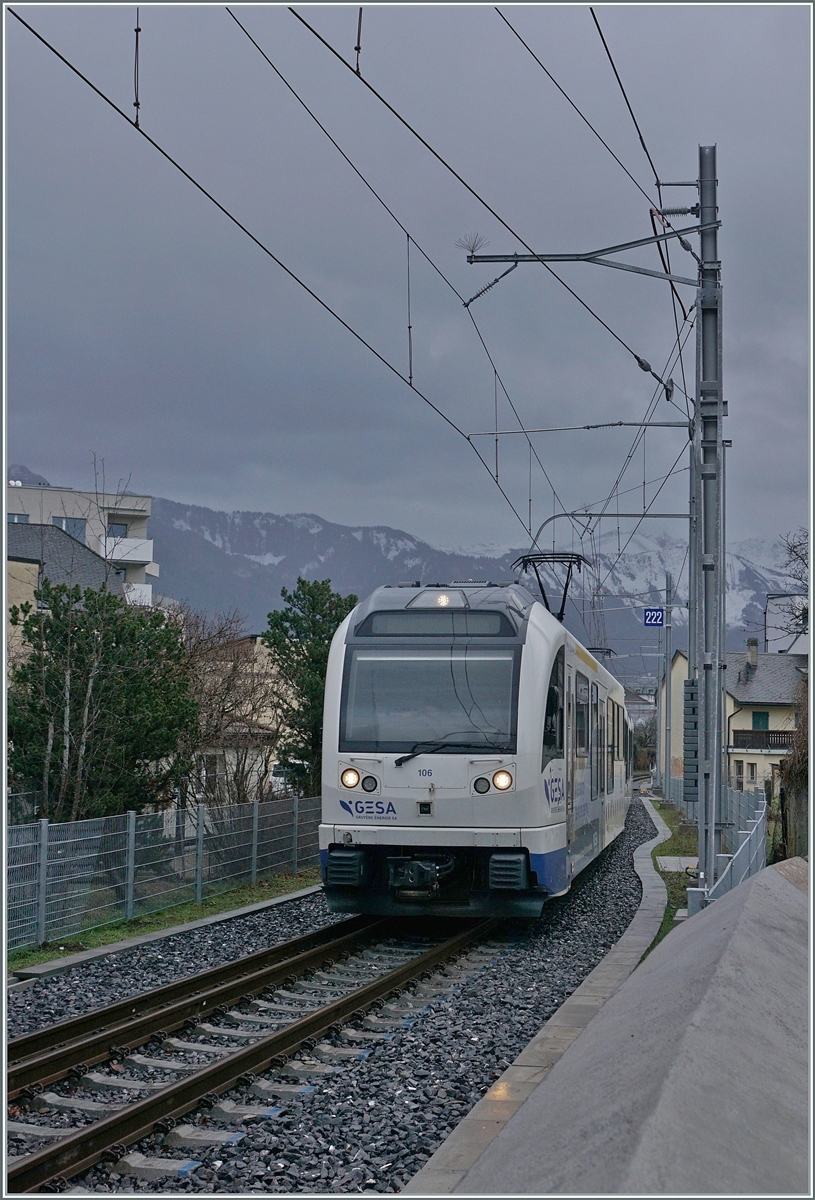 Der neue LEB Be 4/8 N° 62 auf einer Dienstfahrt (Testfahrt?) in Richtung Lausanne-Flon wird in Jouxtens-Mézery von eine RBe 4/8 gekreuzt, was die Gelegenheit bietet, die beiden verschiedenen Gesichter der beiden Stadler Züge zu vergleichen.