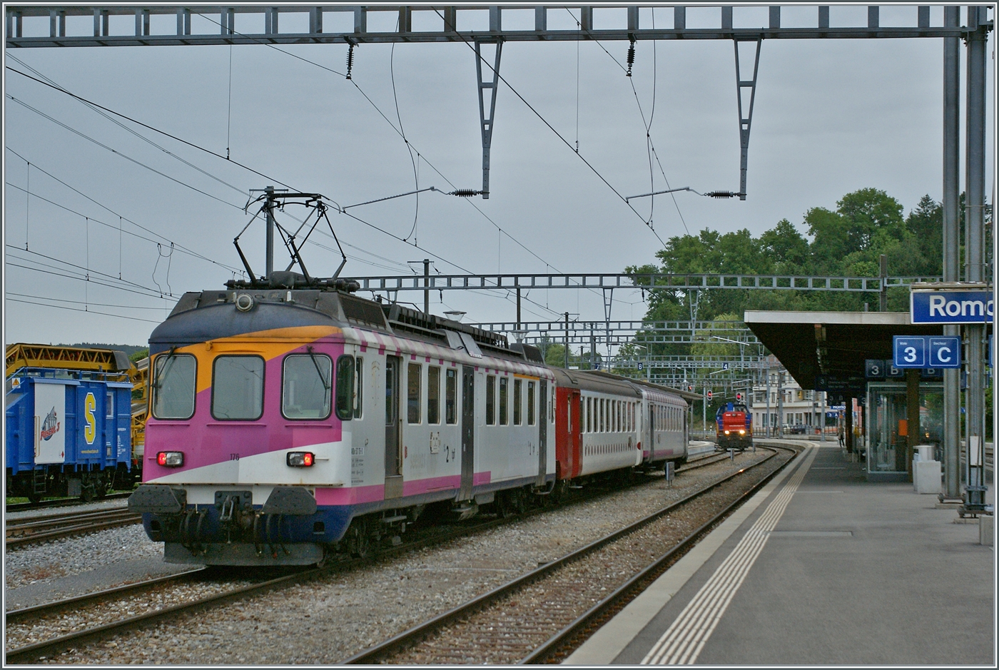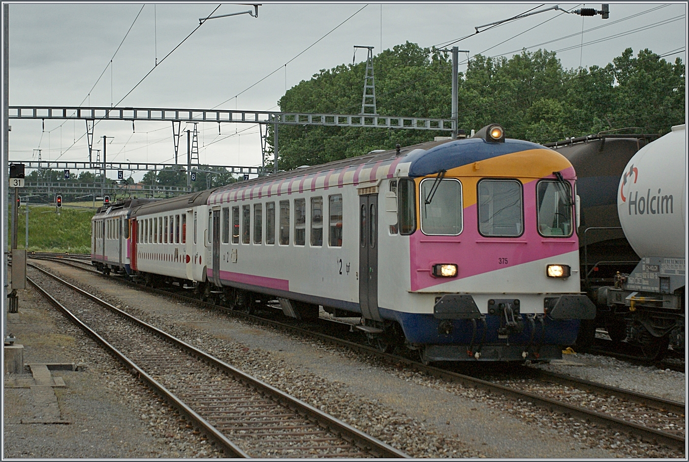 Der ABDe 534 316-1 mit seinem Bt (beide ex MThB) als Regionalzug 4214 kurz nach Le Pont auf der Fahrt nach Vallorbe. Diese Komposition wird in der Regel im Schülerverkehr eingesetzt, und verkehrt nur selten in den Taktzügen Vallorbe - Le Brassus.