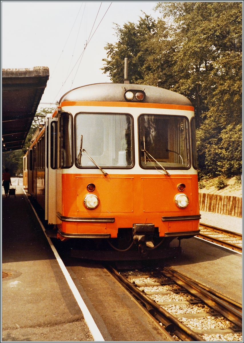 Der WM BDe 4/4 N° 2 wartet mit einem DB Gs und einem SBB Gms als Regionalzug 4928 am 25. Juli 1984 auf die Abfahrt nach Fahrwangen Meisterschwanden. Die 8.23 lange Wohlen - Meisterschwanden Bahn wurde am 17. Dez. 1916 eröffnet und mit 1000 -1200 Volt Gleichstrom betrieben. Eine Umstellung auf Wechselstrom am 18. März 1966 brachte der nicht gerade florierenden Bahn auch nicht den erhofften Aufschwung, so dass sie schliesslich am 31. März 1997 eingestellt wurde.