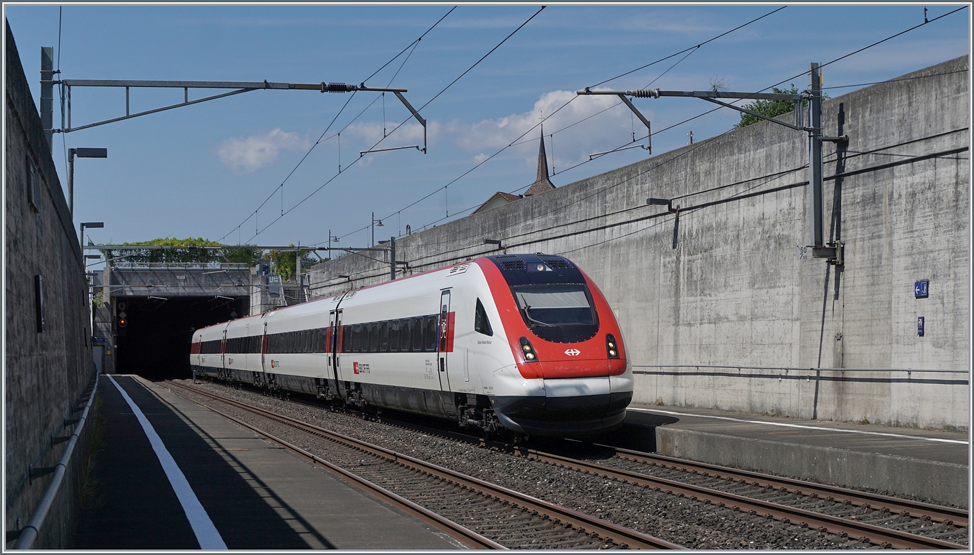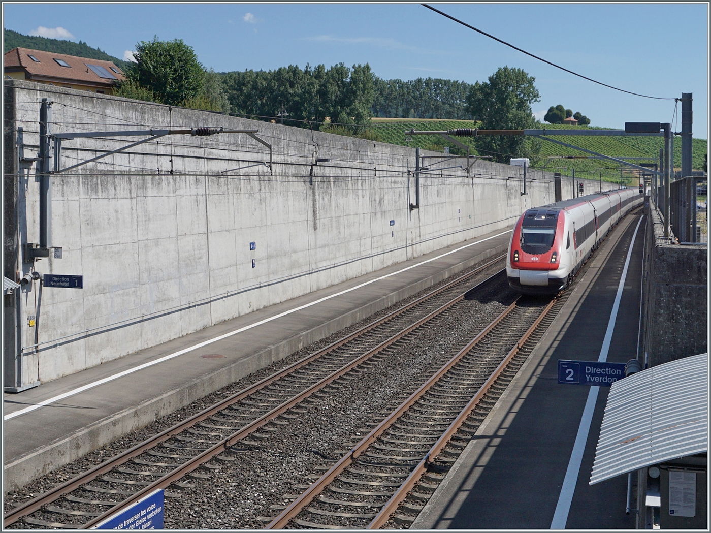 Bei Bipschal (LiIgerz) ist ein SBB RABDe 500 auf dem Weg nach Luasanne und befährt den letzten noch vorhanden, kurzen Einspurabschnitt der Strecken Biel/Bienen - Lausanne.