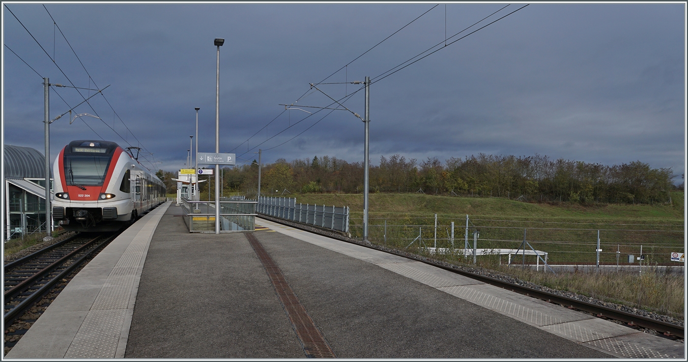Der SBB LEX RABe 522 226 nach La Plaine bei Bourdigny, einer Haltestelle die nicht mehr bedient wird, aber vom Gebäudekomplex für diese Strecke typisch ist.