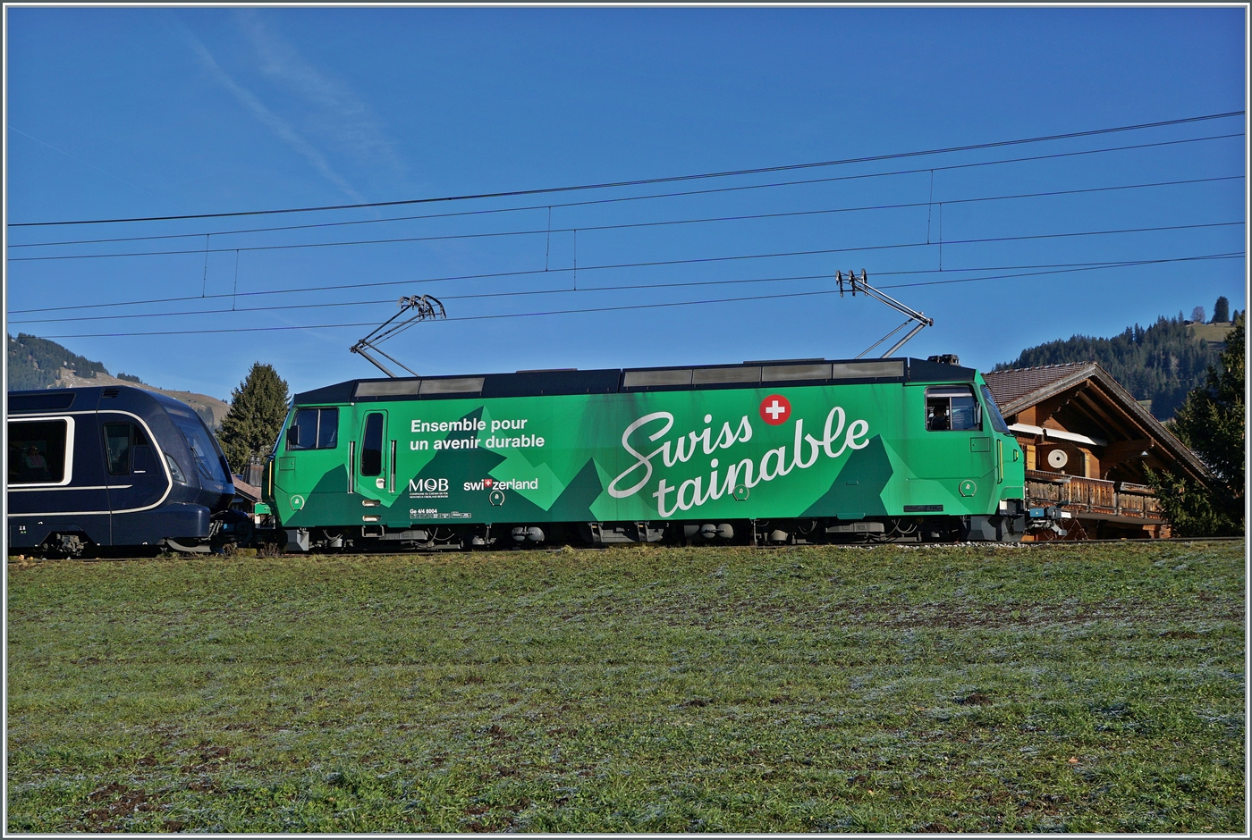 Der CEV MVR SURF ABeh 2/6 7505 beim Halt in Château de Blonay mit dem namensgeben Schloss im Hintergrund.