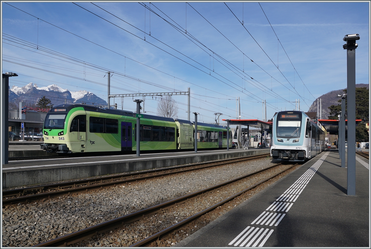 Aus der Gegenrichtung kommen die beiden ASD TPC BDe 4/4 401 und 402 mit dem Ziel Les Diablerets.